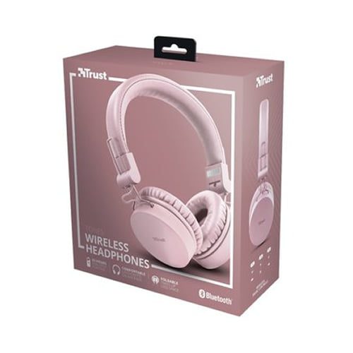 Nombre del producto Audífonos Diadema Bluetooth Trust Tones Rosado Descripción Permite disfrutar de la música en cualquier lugar con 25 horas de reproducción con una sola carga. Se pueden utilizar tanto de forma inalámbrica mediante Bluetooth (rango de 10 m) como con cable gracias al cable de 3,5 mm incluido. Unidades de altavoz de 40 mm que ofrecen un sonido de gran calidad. Suaves almohadillas de polipiel y diadema ajustable. Diseño plegable que ocupa el mínimo espacio posible en el bolso. Botones en el auricular para controlar todas las funciones importantes. Se pueden hacer llamadas de teléfono o acceder rápidamente al asistente de voz mediante el micrófono incorporado.